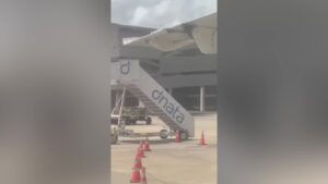 Passengers on a flight to Sao Goncalo, Brazil were greeted by a swarm of bees on the plane’s wing. -...