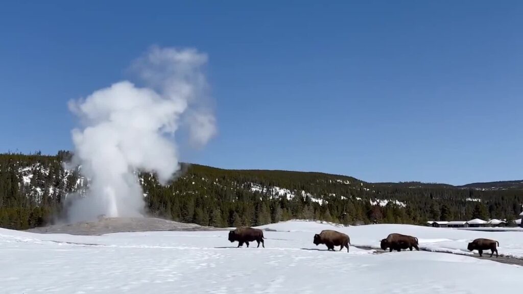 Perfect Moment: Bison Juxtaposed With Old Faithful Eruption – Videos from CBS26