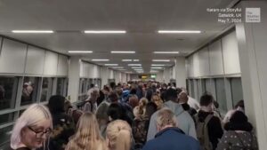 Long lines of passengers were wrapped around terminals across the U.K. after a nationwide problem caused huge delays at some...
