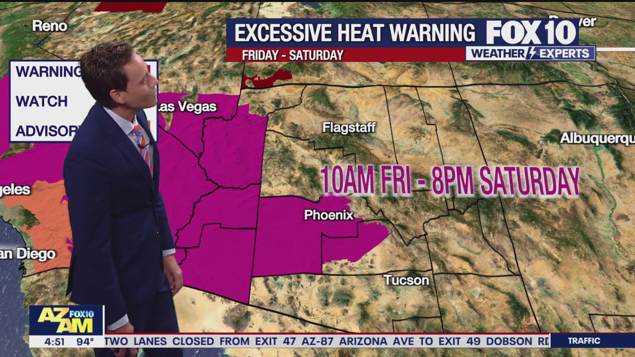 An Excessive Heat Warning will be in effect in Phoenix as temps are expected to reach around 116°F.