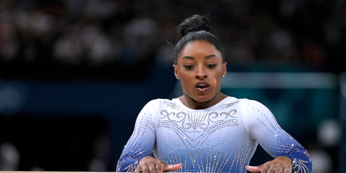 Simone Biles slips off the balance beam during event finals to miss the Olympic medal stand