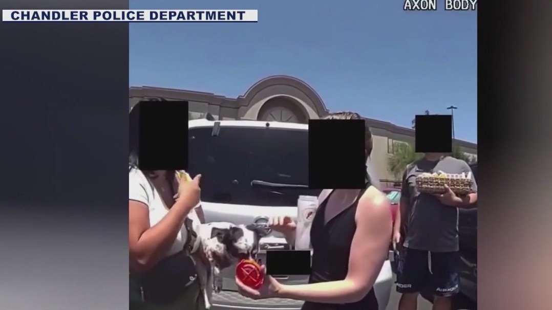 Chandler Police released a video showing the rescue of a dog from a hot car. The temperature inside the vehicle was more than 130 degrees. The dog is safe and its owner is accused of animal cruelty.