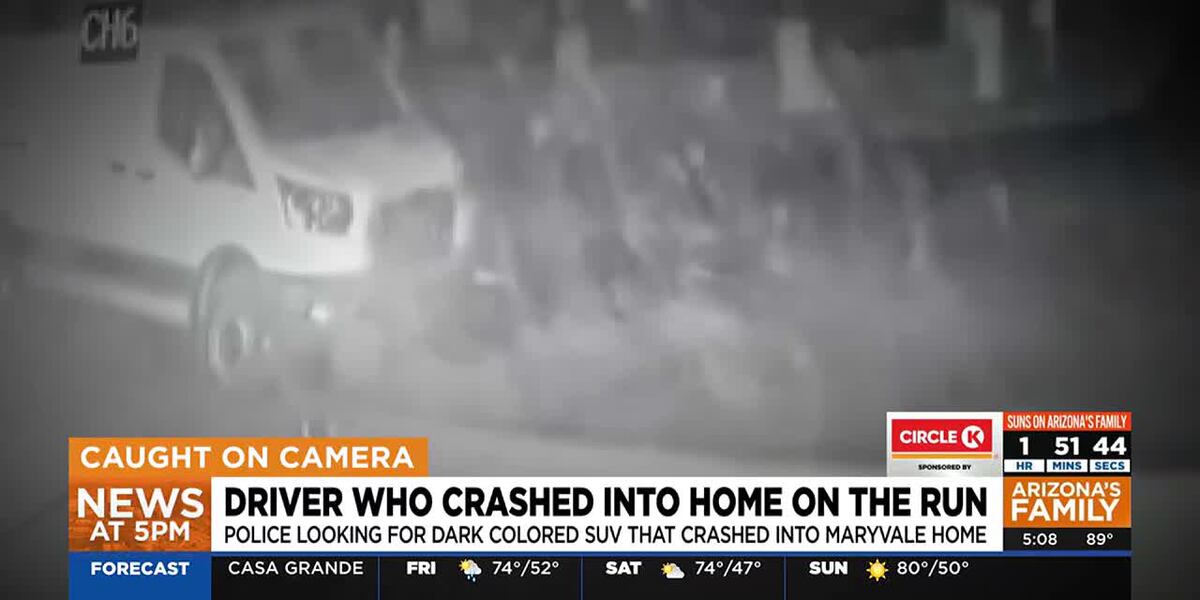 Police are looking for a dark-colored SUV that crashed into a home in Maryvale, near 71st Avenue and Holly Street.