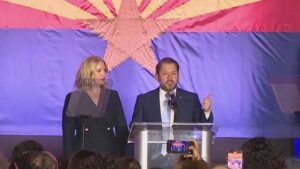 Ruben Gallego gives a speech to his supporters saying he is the "soon-to-be" US Senator representing the state of Arizona.