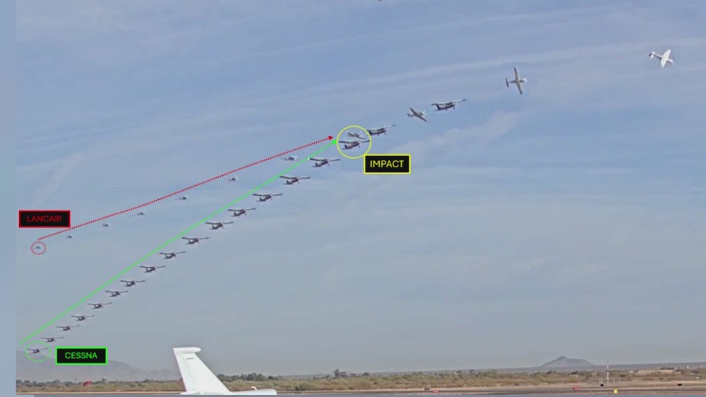 Surveillance pictures of the moments the Cessna and Lance airplanes collided in Marana, AZ are included in the report. Investigators say a flight instructor was in the Cessna with a student, practicing touch down manuevers.