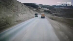 Dashcam footage shows the moment a landslide overtook a gold mine in Turkey. Nine people are missing with rescue efforts...