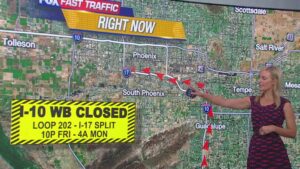 Westbound Interstate 10 will be closed between the Loop 202 Santan and the I-17 Split from 10 p.m. Friday through...