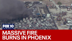 A large fire at a scrapyard near 23rd Avenue and Broadway Road broke out in Phoenix on March 25. SkyCBS26...
