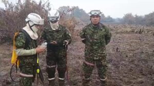 Members of the Colombia military rescued a turtle from one of several wildfires burning in the northern part of the...